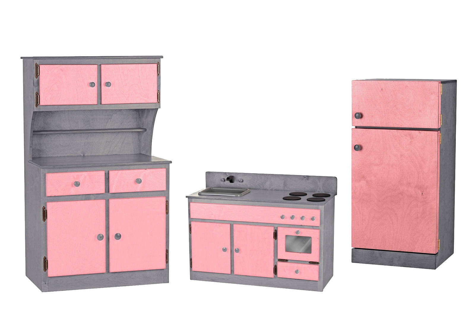 Children S Kitchen Set Fridge Hutch Sink Stove Combo Gray Pink Walmart Com